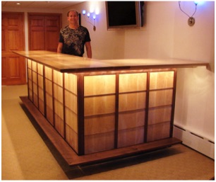 drawers and doors are finished with water-proof and alcohol-proof catalyzed lacquer. All other parts are finished with hand rubbed oil and wax finish.