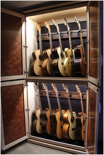 glass in the doors can either be textured, or flat (pictured). glass shelves allow the dimmable LED lighting to filter all the way to the bottom level. Textured glass in the doors throws a lovely pattern of dappled light across the room.