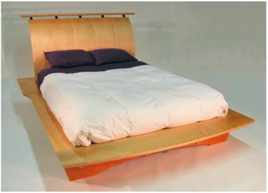 Combining smooth curves with flat floating planes, our platform beds are designed specifically for people who love natural wood, and who like to spend time in bed...reading, watching TV, or of all things, sleeping. notably, they all come with a headboard, that unlike other brands and models, provides an curved reclining surface that's comfortable to lean up against. The platform serves as a place to sit while dressing, and doubles as a side table providing a place for books, tv remote, a glass of water, or morning coffee. The platform is sturdy enough to stand on when you have to change a lightbulb or dust the ceiling fan blades. On several of our models, the headboard is also capped with a 6 inch wide rail that serves as a narrow shelf for perhaps a small reading lamp, or other lightweight objects. the decking under the mattress is very firm, providing excellent support for popular mattresses like the TempurPedic® and the Select Comfort Sleep Number®. No box springs should be used on our platform beds.