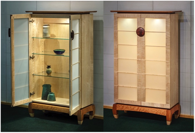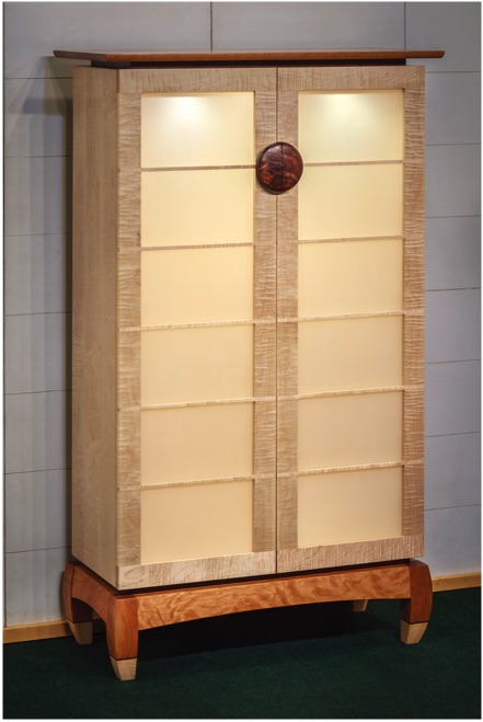 Tall Lighted Shoji Cabinets - with 2 hinged doors.
